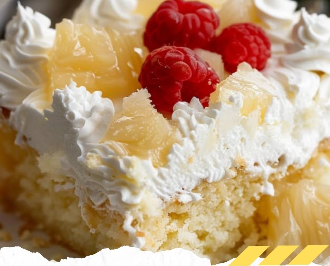 In another bowl, combine the thawed Cool Whip with the rum extract. Spread the Cool Whip mixture over the pineapple layer, covering the cake completely.
