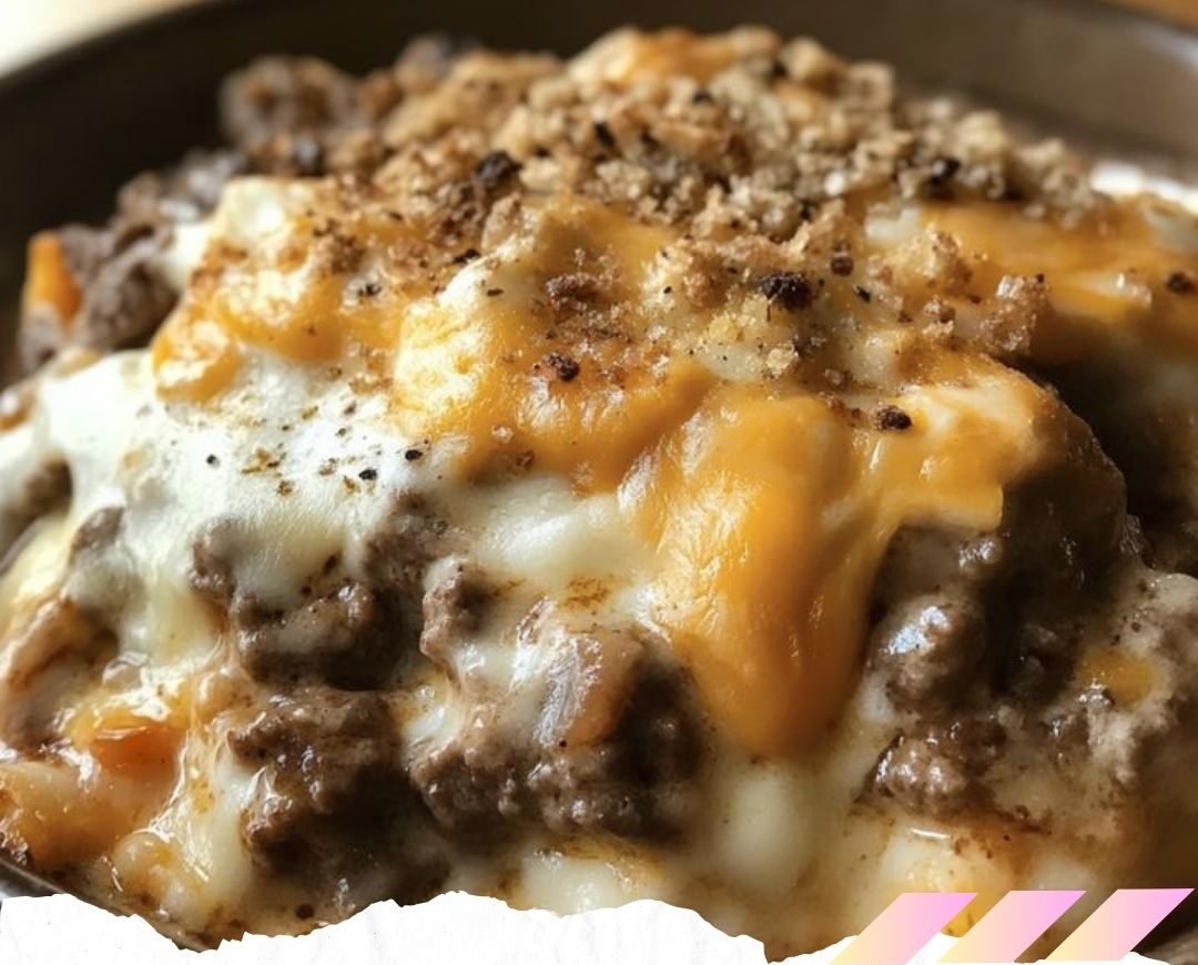 4. In a separate bowl, whisk together cream of mushroom soup and milk. Pour over the meat patty.