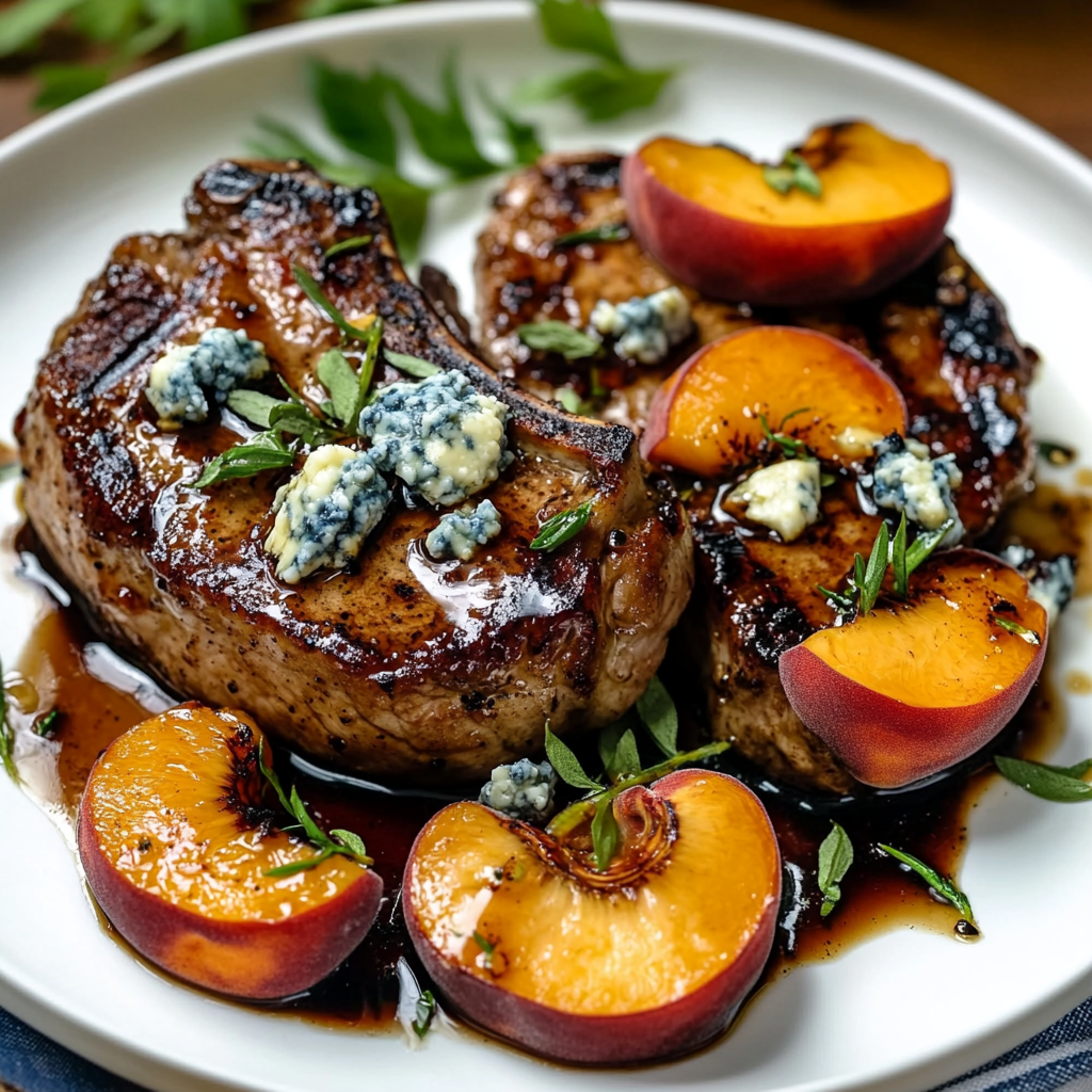 This recipe captures the perfect balance between sweet and tangy — peaches caramelize beautifully in balsamic reduction while the pork chops stay juicy and tender. The finishing touch of crumbled blue cheese adds a creamy, salty contrast that ties everything together.