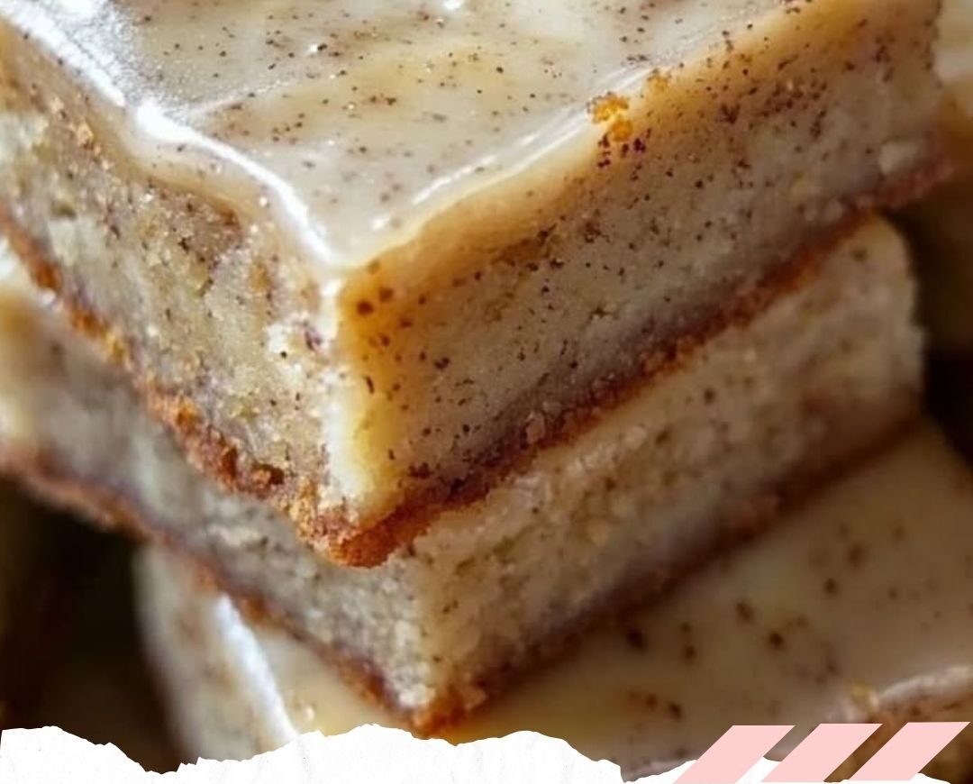 Pour frosting over warm banana bread brownies and smooth with a spatula.