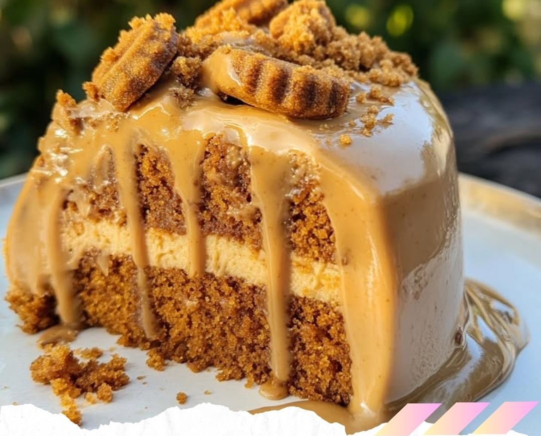 Slice and serve this indulgent Biscoff cookie butter cake for a special treat!