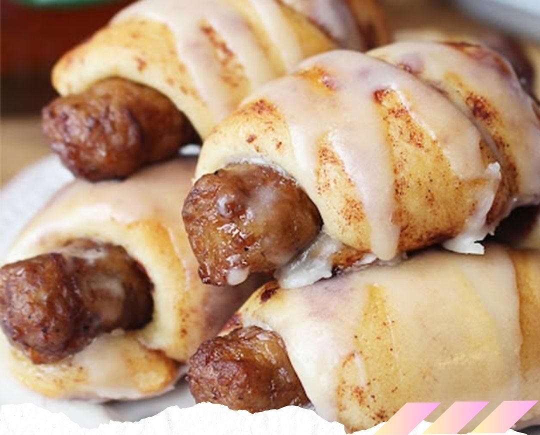 Place a sausage link at the edge of each pancake oval and roll it up, ensuring the sausage is fully encased.