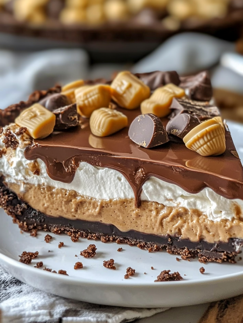 Have you ever taken a bite of something so good you had to pause for a second? That’s exactly what this pie delivers. With layers of chocolate pudding, creamy peanut butter filling, fluffy whipped cream, and a crunchy chocolate crust, every forkful is pure happiness.