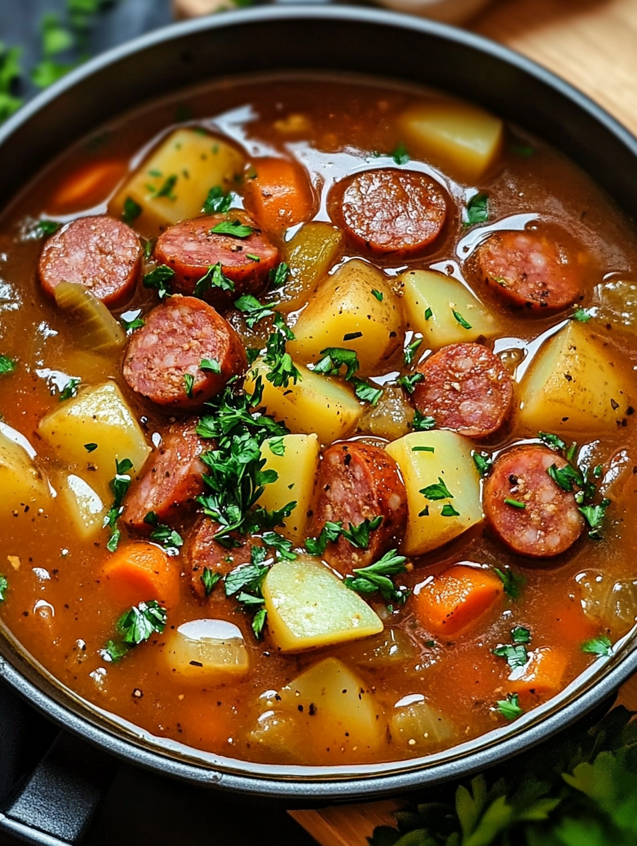 With smoky sausage, hearty vegetables, and comforting broth, it’s the kind of meal that warms both the stomach and the soul. Whether you’re cooking for family, friends, or just yourself, this recipe delivers flavor, comfort, and ease.