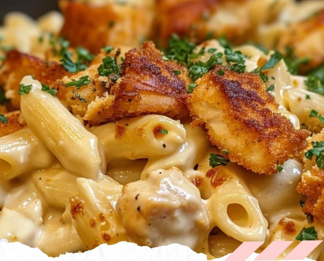 6. Combine the cooked penne with the creamy chicken mixture, making sure everything is evenly mixed.