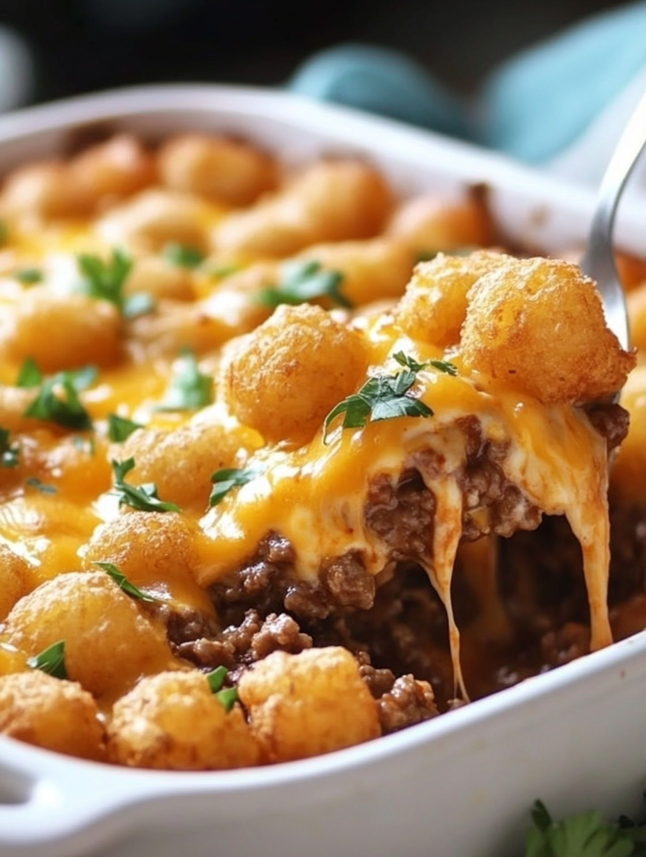 This recipe brings together juicy ground beef, rich cheese, savory tomato flavor, and crispy tater tots in every bite. It’s simple, satisfying, and perfect for busy weeknights. Think of it as your favorite fast-food cheeseburger transformed into a cozy, oven-baked masterpiece. Ready to dive in?