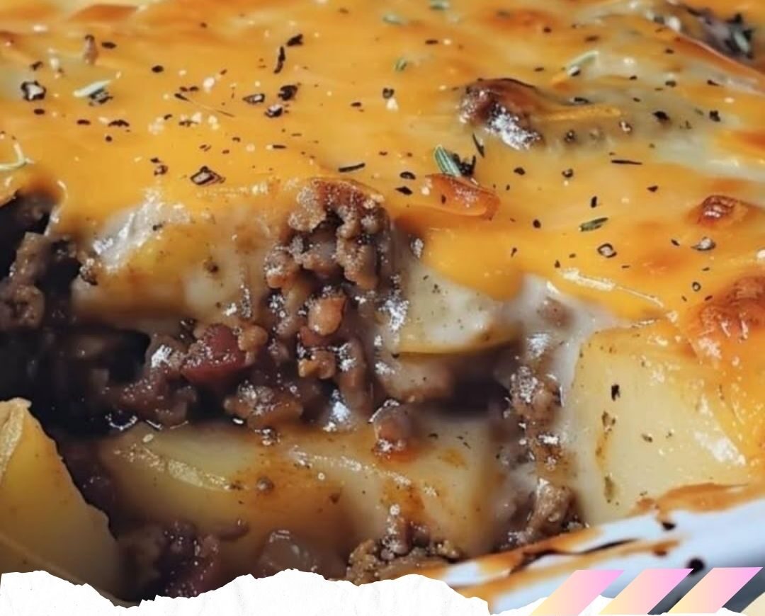 Begin layering the ingredients in the crockpot: start with a layer of potatoes, followed by a layer of beef, then a layer of the soup mixture, and finally a layer of cheese. Repeat the layers until all the ingredients have been used, finishing with a layer of cheese on top.