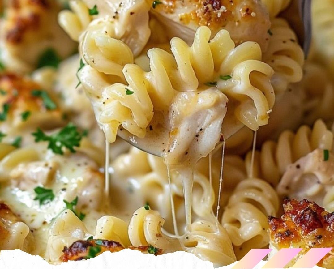 - In a large mixing bowl, combine the cooked pasta, chicken, Alfredo sauce, garlic parmesan sauce, half of the mozzarella cheese, and half of the Parmesan cheese. Season with salt and pepper to taste. Mix well. Add about ½ cup pasta water if needed for extra sauciness.
