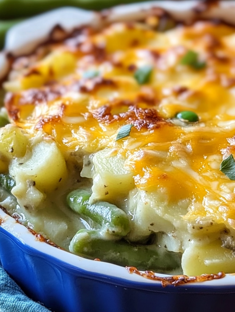 Green Bean and Potato Casserole is a classic comfort dish that combines tender potatoes, crisp green beans, creamy soup, and melted cheese into one delicious bake. It’s the kind of recipe that doesn’t try too hard—but still wins everyone over.