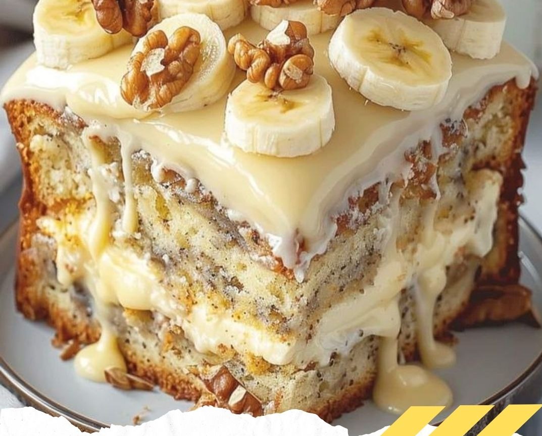 Think of it as comfort in a slice — every bite offers creamy custard, banana-infused softness, and nutty crunch. Whether served cold or slightly warm, this cake captures hearts (and appetites) effortlessly.