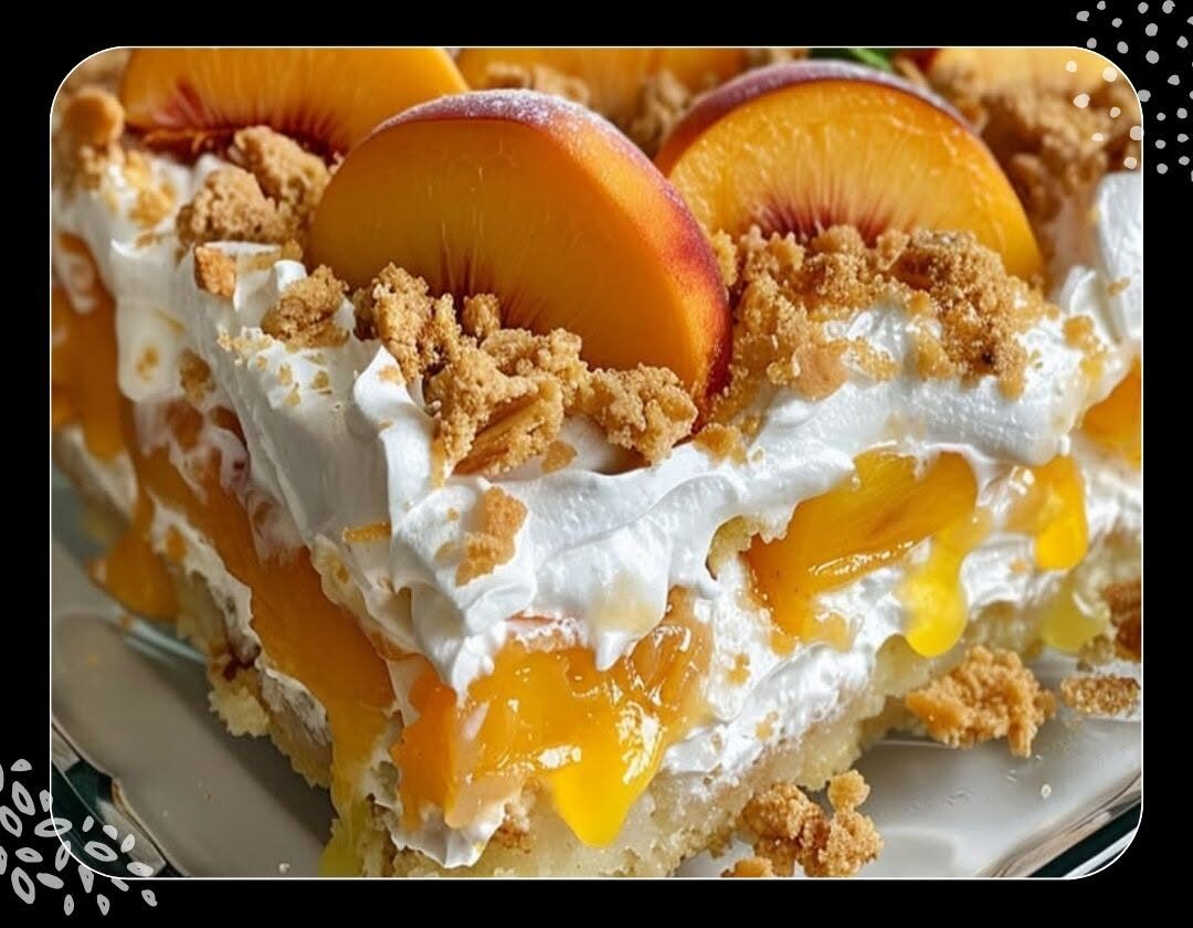 Who doesn’t love an easy, crowd-pleasing dessert? Especially when it tastes like summer in every forkful! This Heavenly Summer Peach Cobbler Poke Cake combines the moist softness of vanilla cake, the juicy sweetness of peaches, the richness of whipped cream, and the crumbly delight of graham crackers. It’s like peach cobbler got a glow-up—and you’re invited to the party.