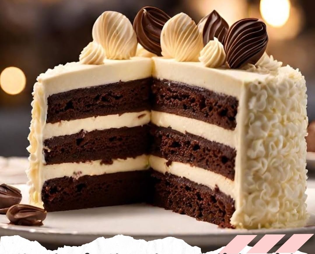 6. Assembly: Cut each cake layer horizontally to make four layers. Place one layer on the serving plate, spread with one-third of the cream cheese filling. Repeat layering with cake and filling. Frost with chocolate cream cheese buttercream.