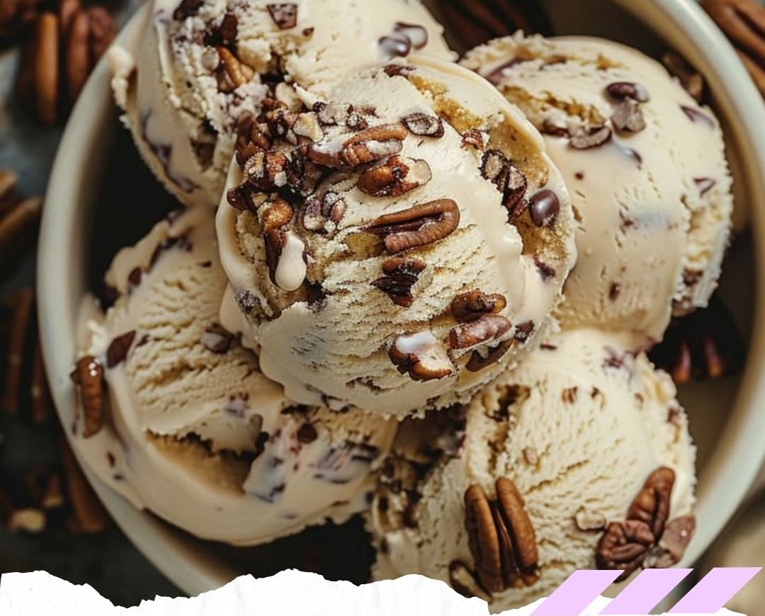 Scoop out your masterpiece into a bowl or cone. Each spoonful is a symphony of buttery sweetness, crunchy pecans, and velvety cream. Pure bliss!