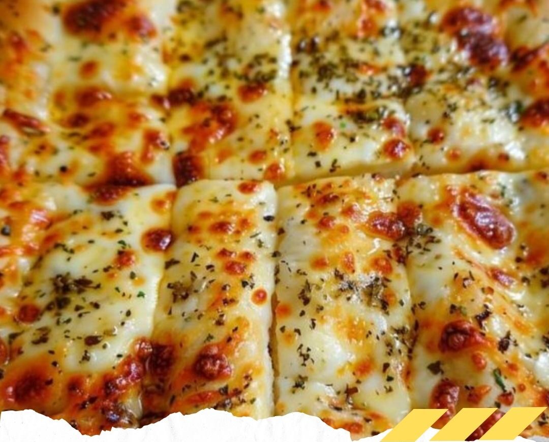 - Before baking, cut the cheese-covered pizza crust into 16 equal rectangles using a pizza cutter or a large knife.