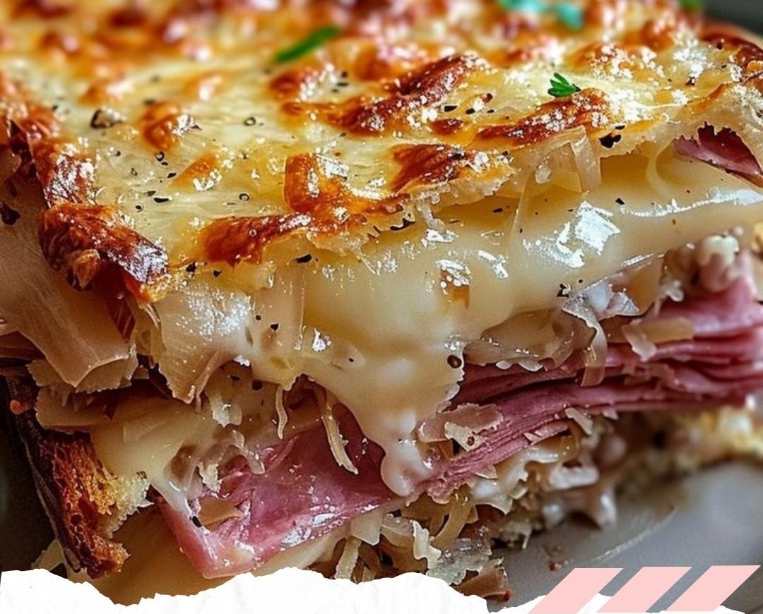 5. Repeat the layering with the remaining rye bread, corned beef, sauerkraut, and Swiss cheese. Pour the remaining sauce over the top.