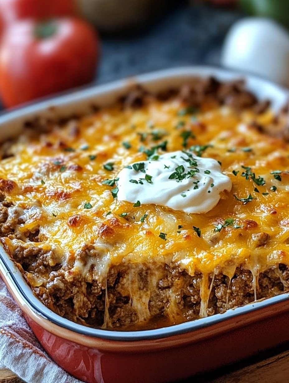 Picture this: layers of seasoned beef, fluffy biscuits, melty cheese, and a creamy, tangy topping that pulls everything together like a classic Western with a happy ending. Sounds good, right?