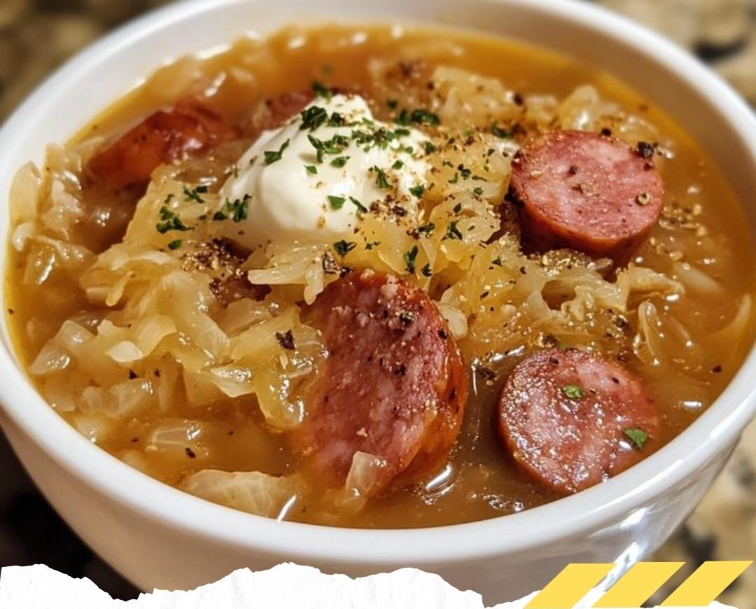 Stir in the sauerkraut, chicken broth, caraway seeds, paprika, salt, and pepper.