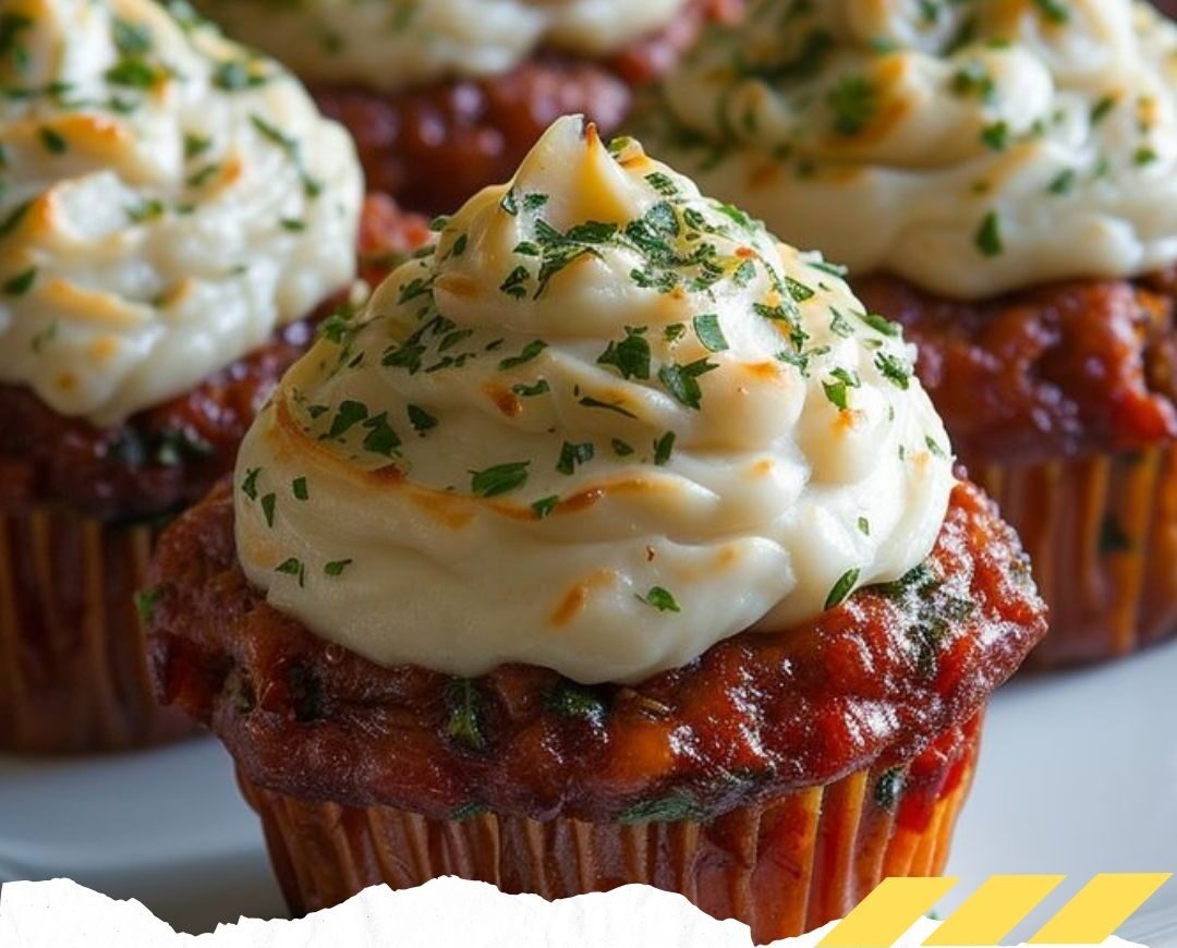 Pipe the whipped potatoes on top of each meatloaf cupcake using a piping bag with a star tip.