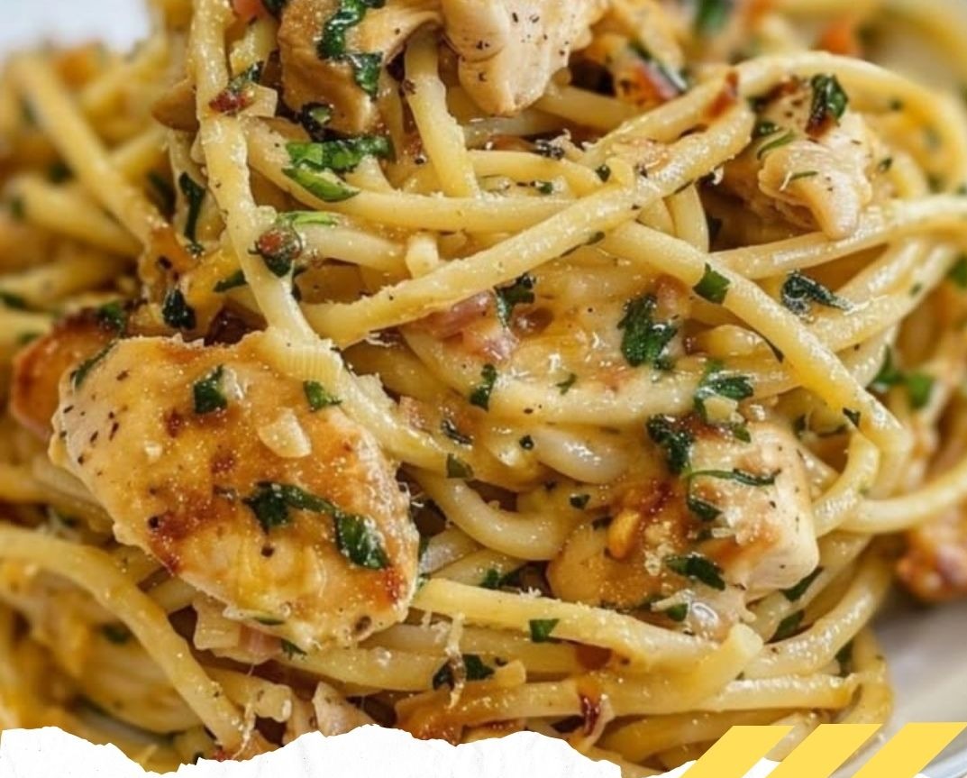 Combine Pasta and Mixture: Stir the cooked spaghetti into the chicken mixture. Pour the combined mixture into the prepared baking dish.