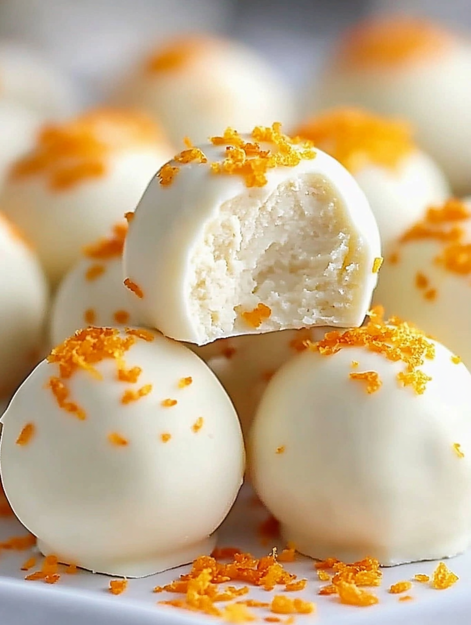 They’re creamy on the inside, slightly tangy from fresh orange juice and zest, and beautifully sweet thanks to white chocolate. Every bite melts in your mouth like a tiny orange cloud.