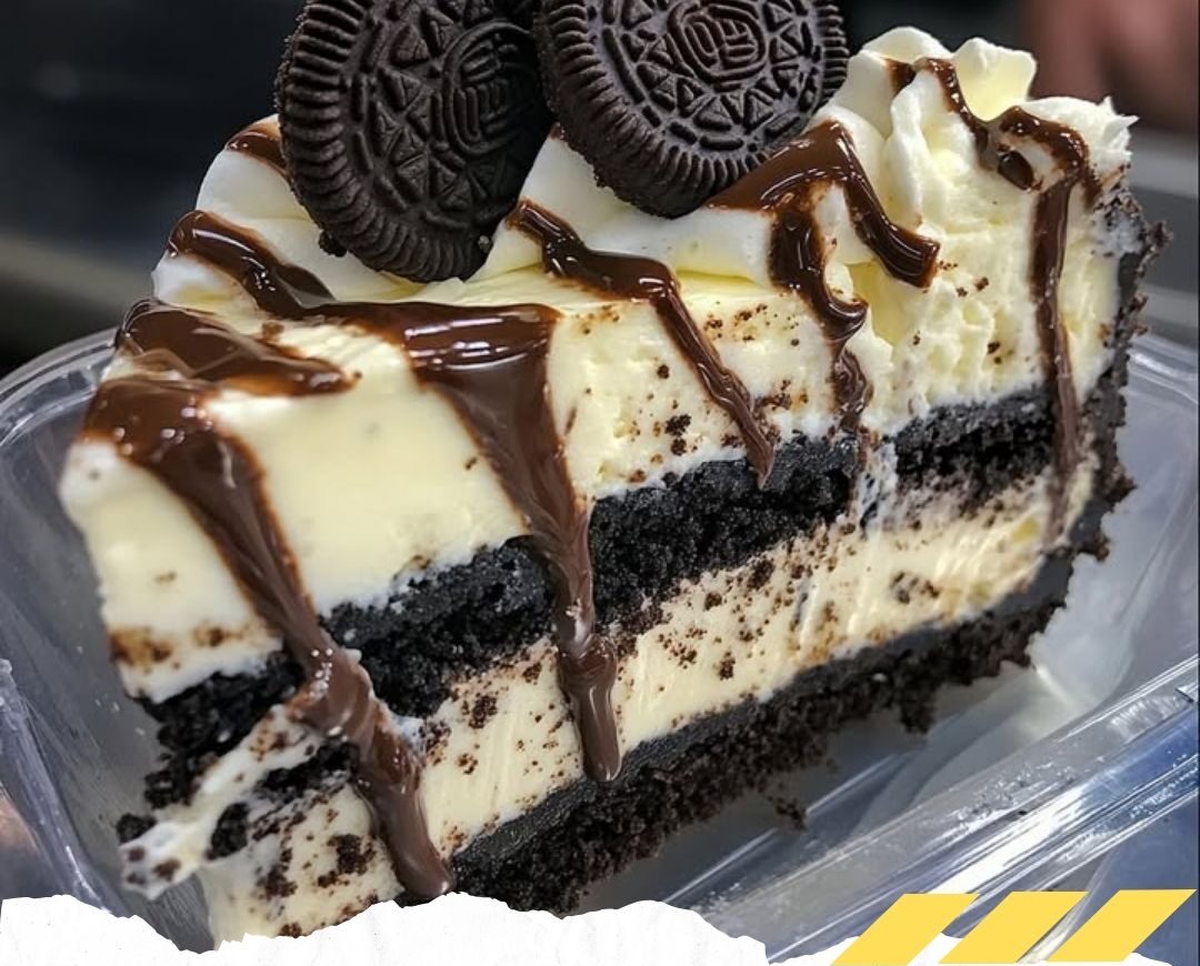 Slice the cheesecake and enjoy the rich, creamy layers of Oreo goodness!