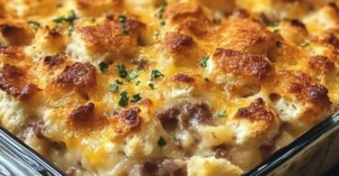Biscuits and Gravy Hashbrown Breakfast Casserole