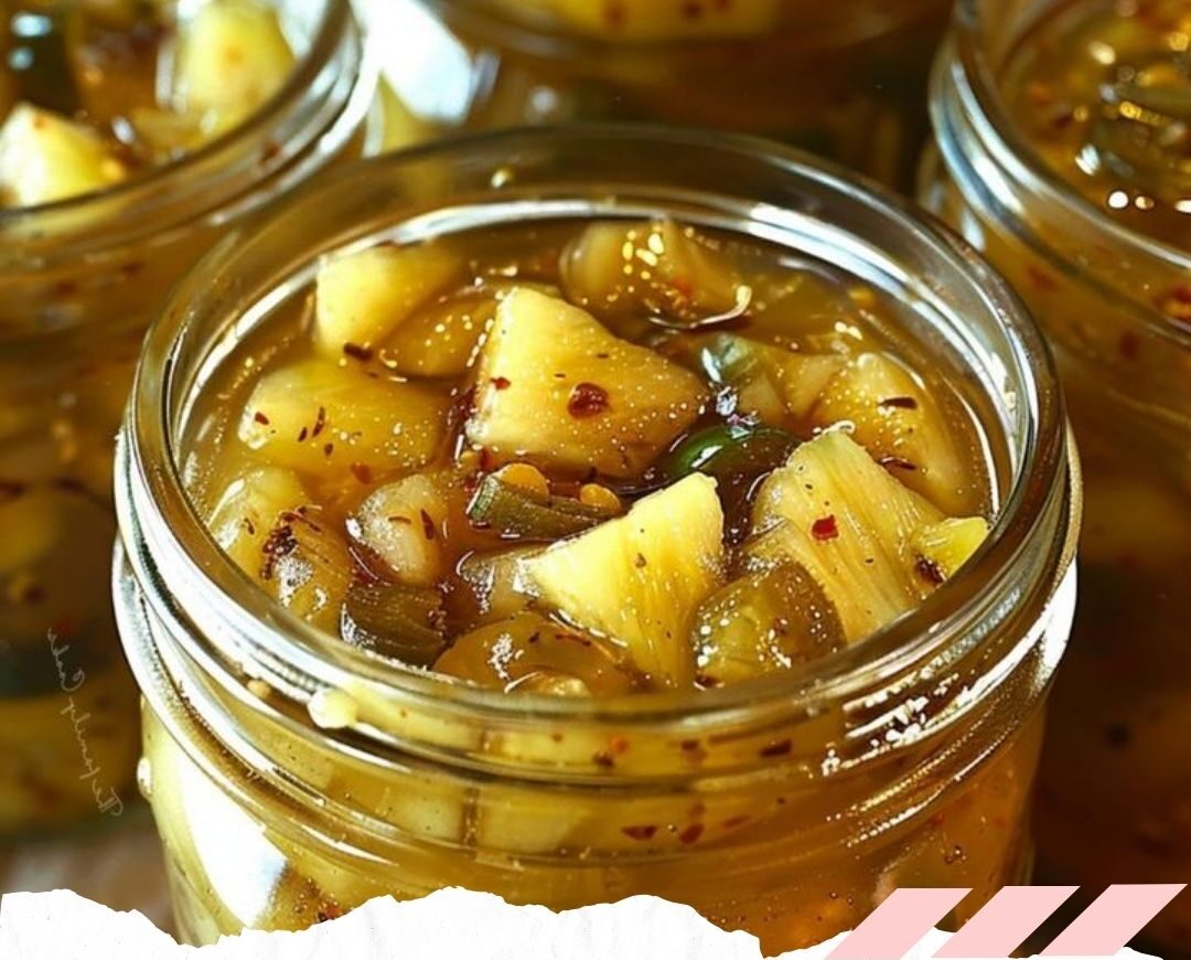 4. Fill the Jars: Once the pineapple mixture is ready, carefully ladle it into the sterilized jars, leaving a bit of headspace at the top. Wipe the rims, secure the lids, and process the jars in a hot water bath for 10 minutes.