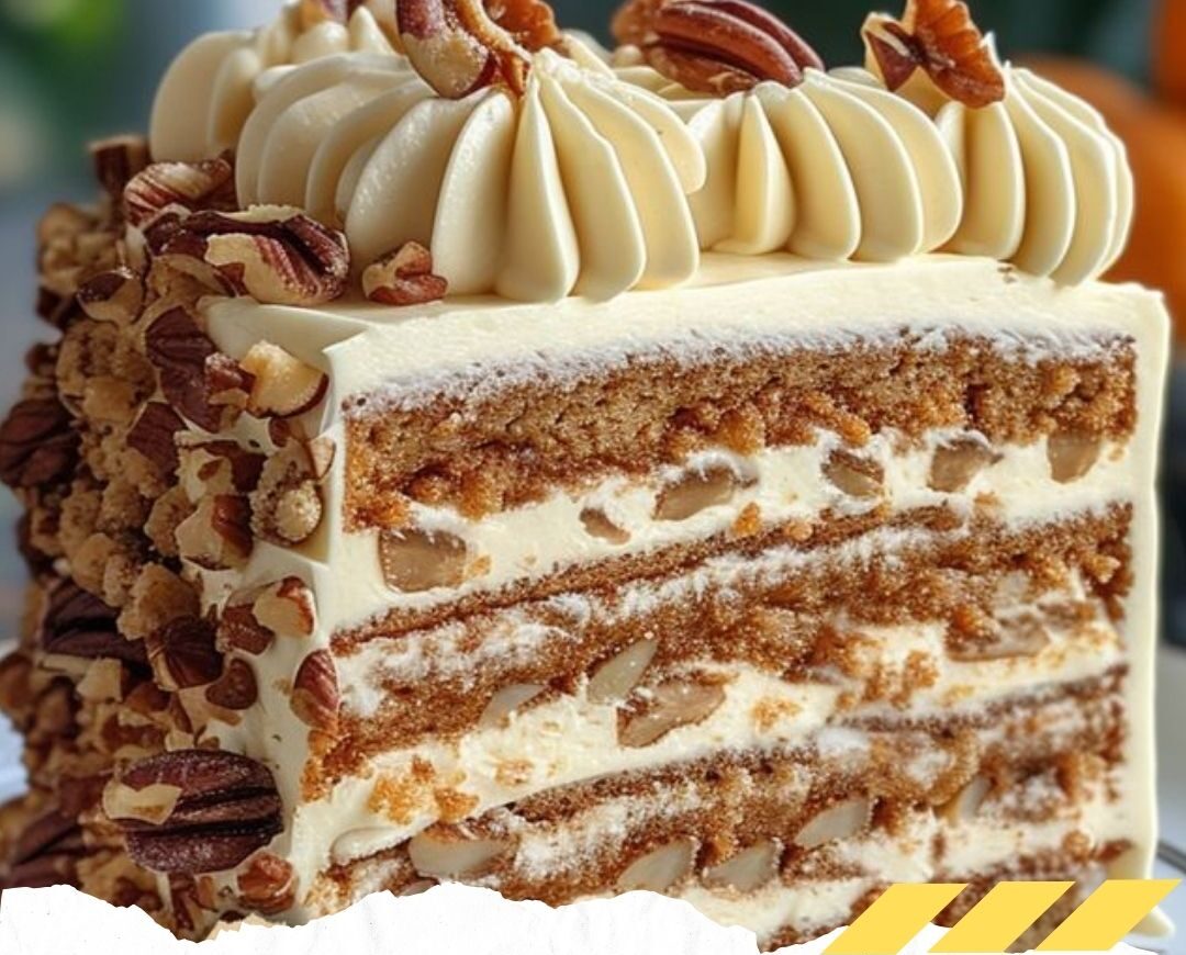 Set aside 100 g of ground walnuts. Heat the sugar in a non-stick pan until it caramelizes lightly, stir in the walnuts, spread on foil, and let set. - Cake Base: