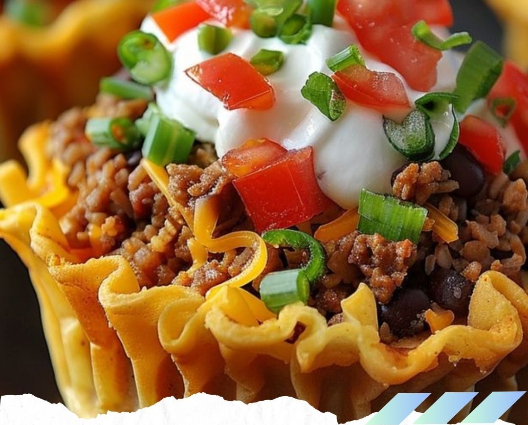 4. **Assemble Cups**: Place a wonton wrapper in each muffin tin cup, pressing it down to form a cup shape. Spoon a tablespoon of the seasoned beef into each wonton wrapper. Top with a sprinkle of shredded cheddar cheese. Add another wonton wrapper on top, pressing down gently, then add another layer of beef and cheese.