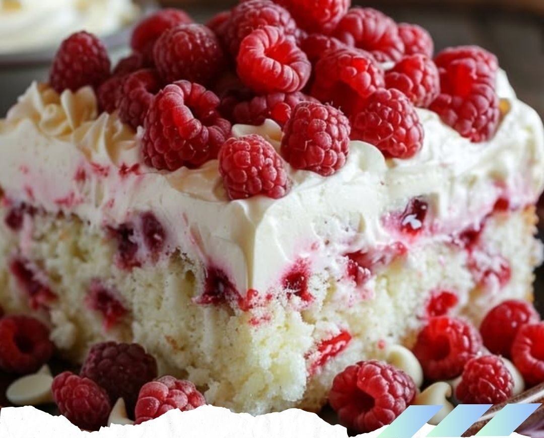 4- Drizzle the raspberry syrup over the cake, ensuring it fills the holes.